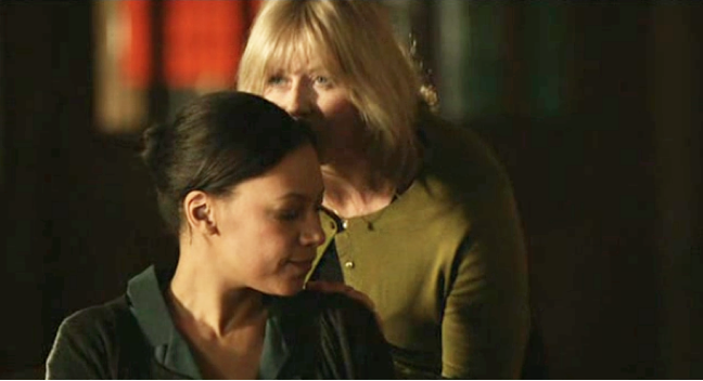 Kate walks up to Caroline and they wrap each other in a prolonged hug].