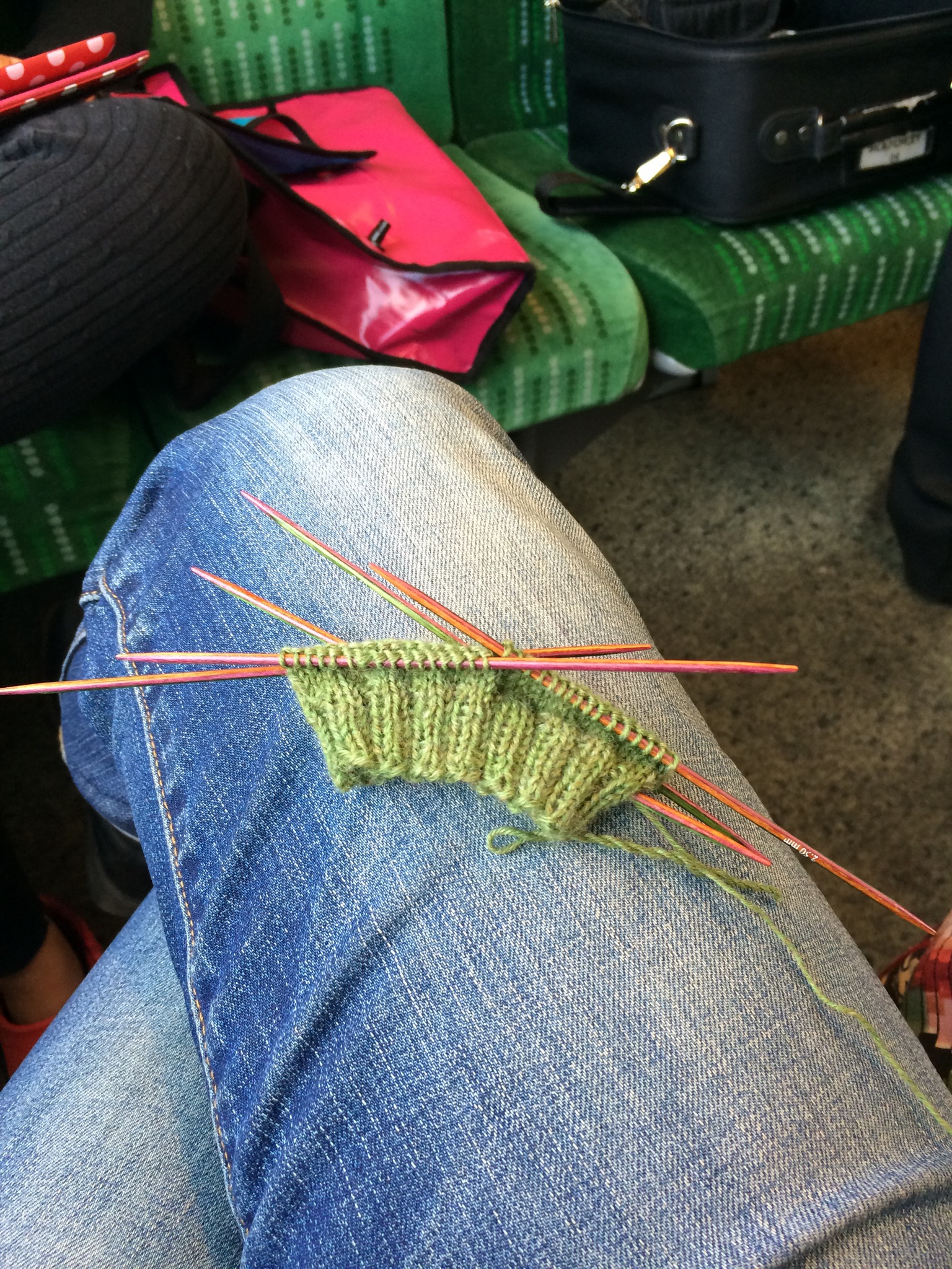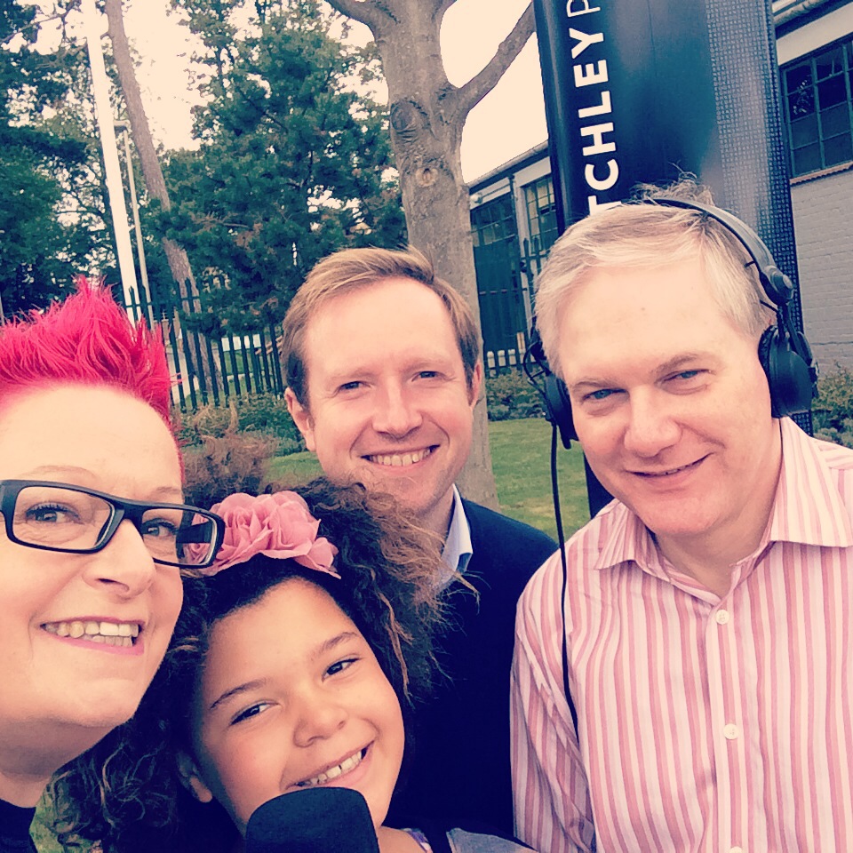Yesterday was busy, and a lot of fun. The morning was spent travelling up to Bletchley Park and being interviewed outside by the BBC’s Adam Fleming and Simon about crowdfunding, the future of publishing and my book Saving Bletchley Park. It was a really fun interview that ended up with Simon recording close up audio of me knitting. Why knitting? Well one of the perks of my crowdfunded book, the one that sold out first included a pair of socks handknitted by me. Here are Adam, Simon and my daughter Leah, and the socks that I’ve just started knitting.