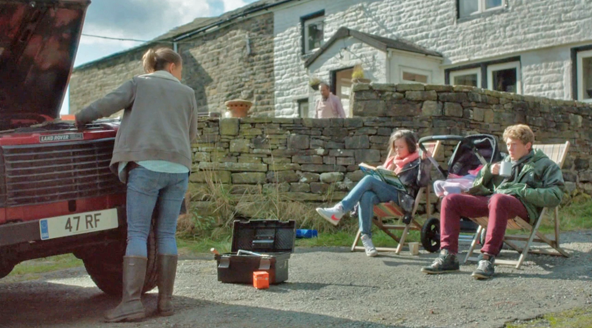Gillian, Raff, Ellie and the baby are out in the yard as Gillian works on her truck, and talking about the wedding, and her not talking to Gary yet, and John’s staying over a couple weeks previous. There’s just one line there with a wee bit of cussing. 🙂